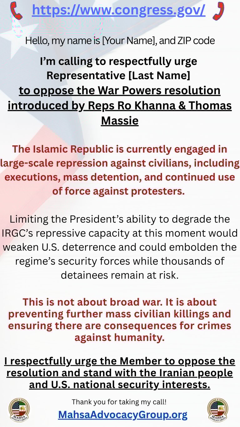 Email US House to Oppose War Powers Resolution by Rep Ro Khanna and Thomas Massie