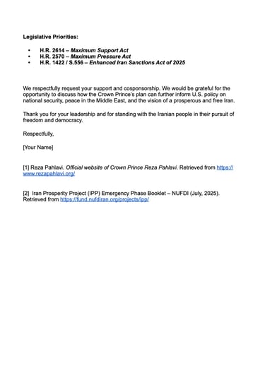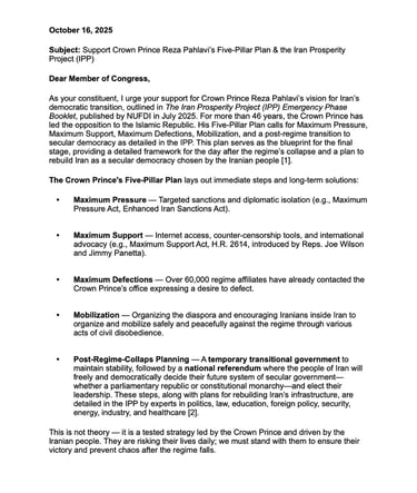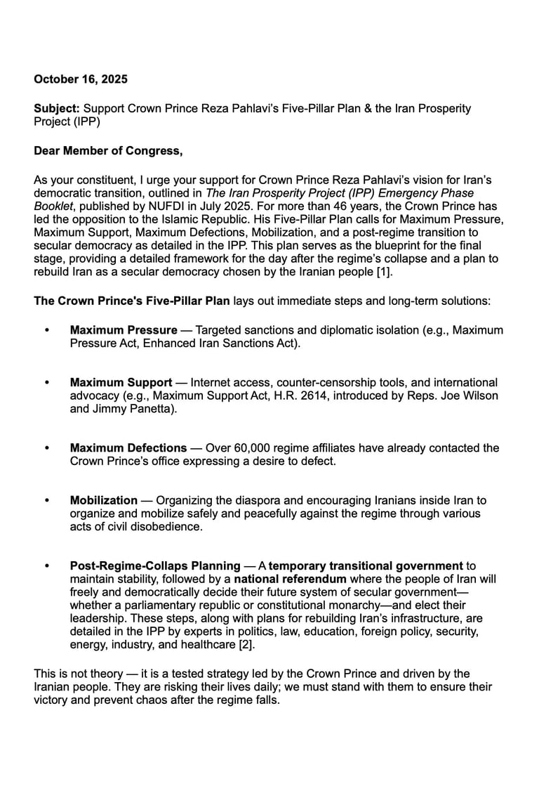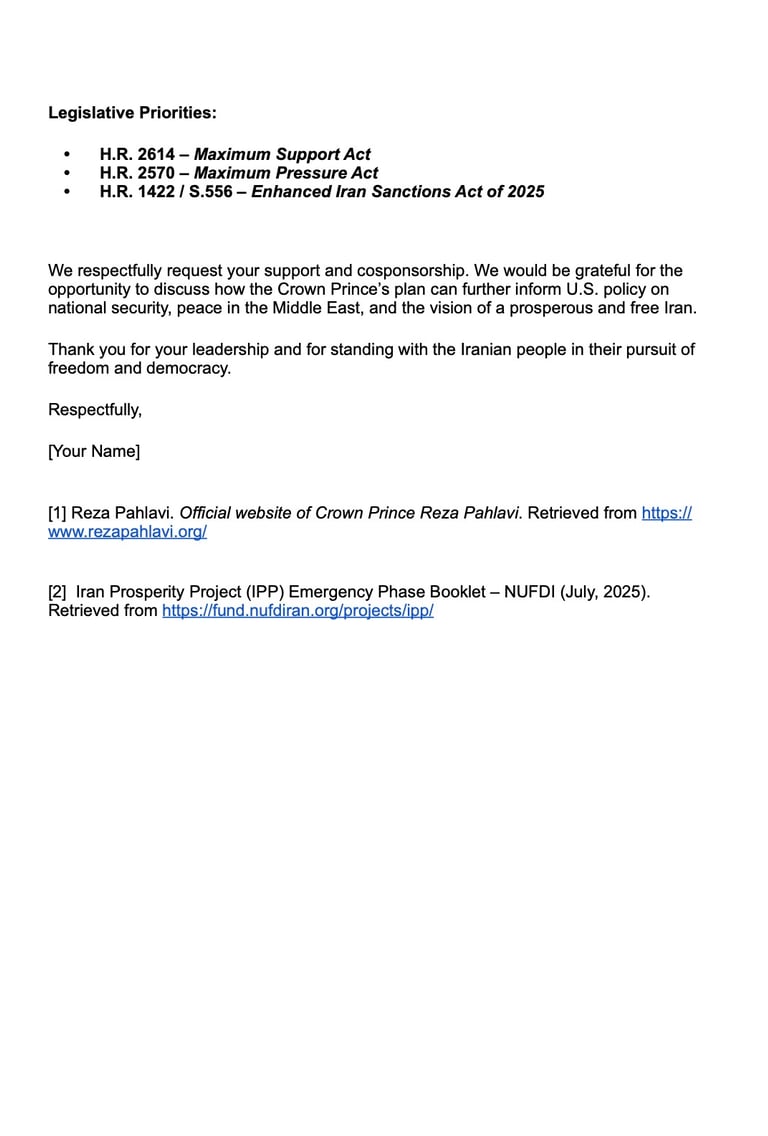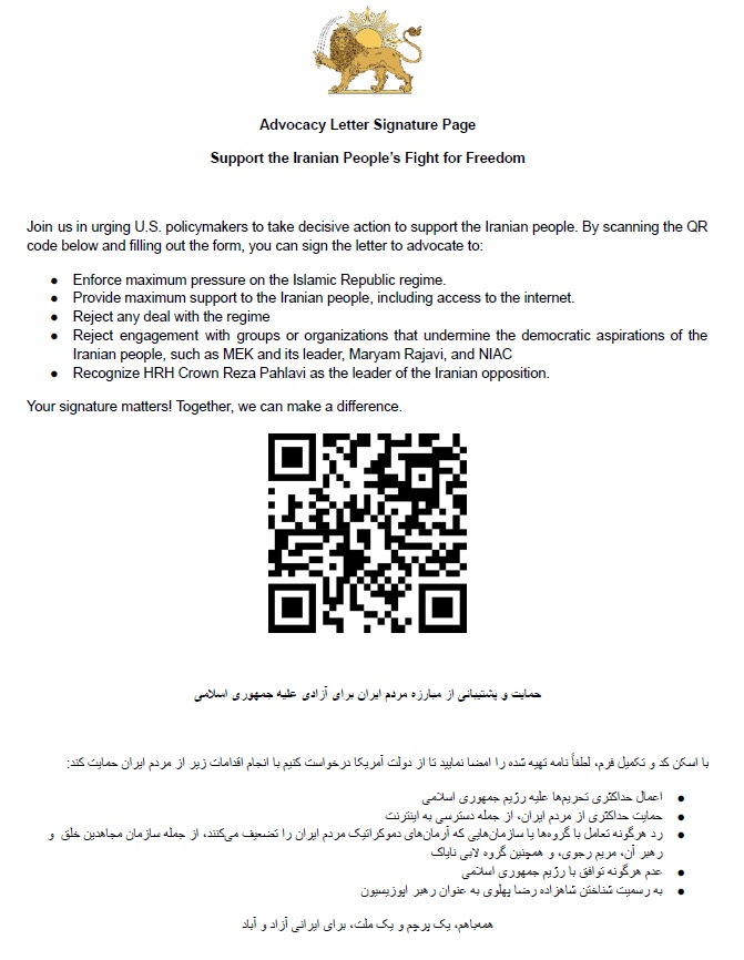 Encourage your congress members to support the Iranian people’s aspirations for freedom and secular democracy, which align with their oppositional and transitional leader, Crown Prince Reza Pahlavi.