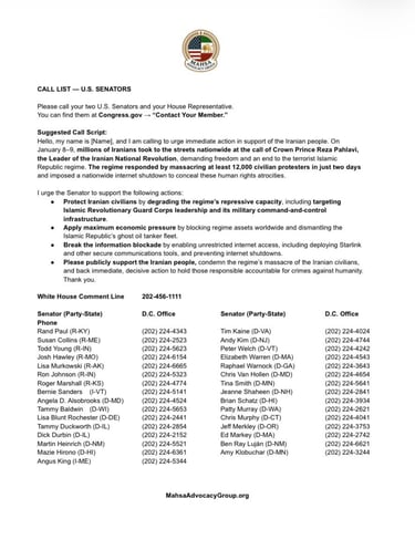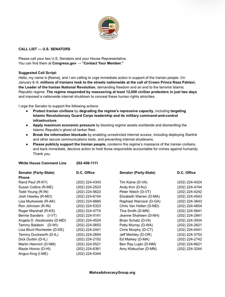 Use the email links below to urge your lawmakers to: support emergency Internet access for the Iranian people (including Starlink direct-to-cell), back President Trump’s recent firm stance toward the Islamic Republic, and directly engage with the people’s recognized leader, Crown Prince Reza Pahlavi.