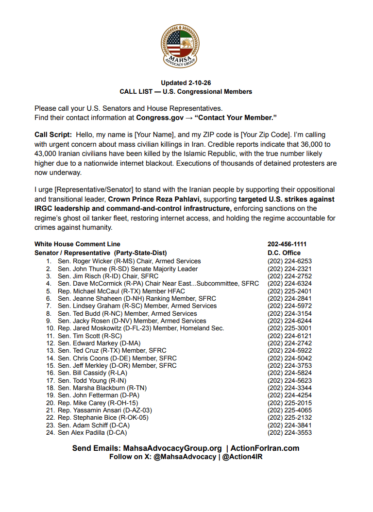 Please call your U.S Senators and Congressmen first, followed by the remainder lawmakers in the below lists. Go through the script in a very professional and amicable tone.